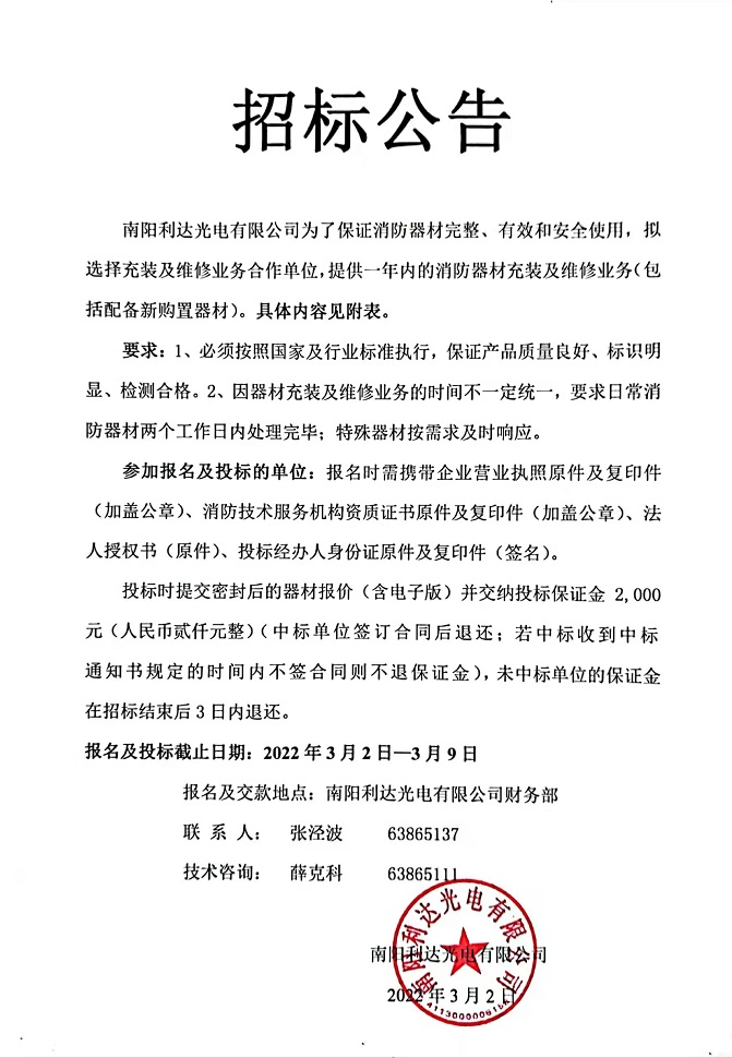 消防器材充裝及維修業(yè)務(wù)合作單位招標