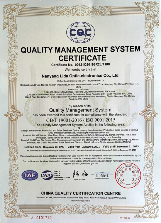 質(zhì)量管理體系認證證書(shū)(英文)